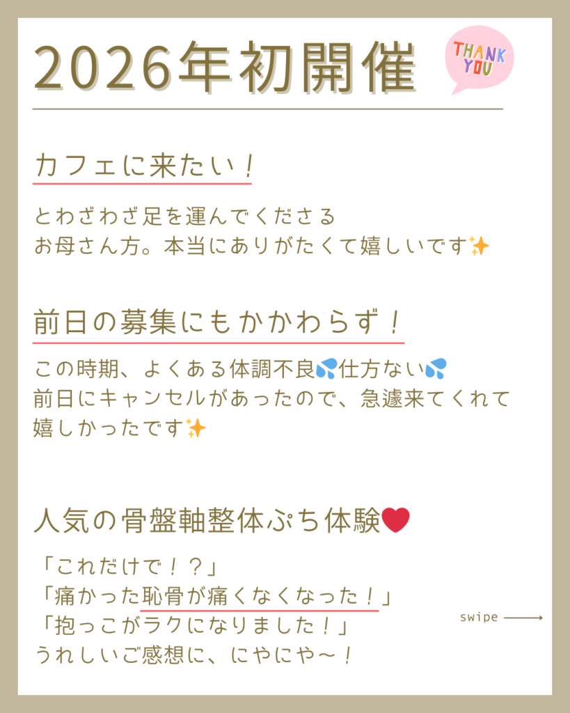前日にキャンセルがあったにもかかわらず、4組のお母さんと赤ちゃんたち、🈵席で開催できたこと、感謝しております。